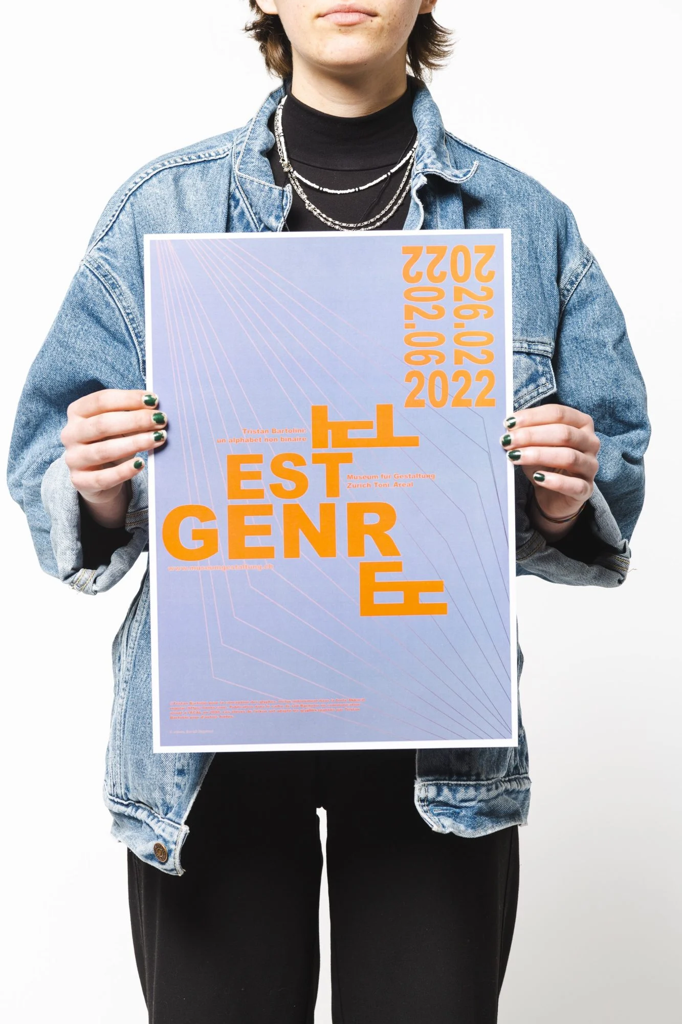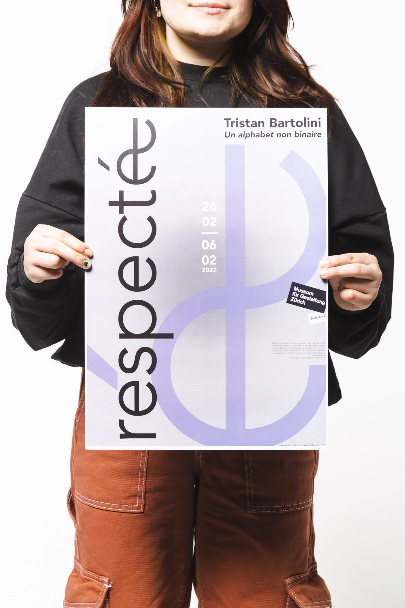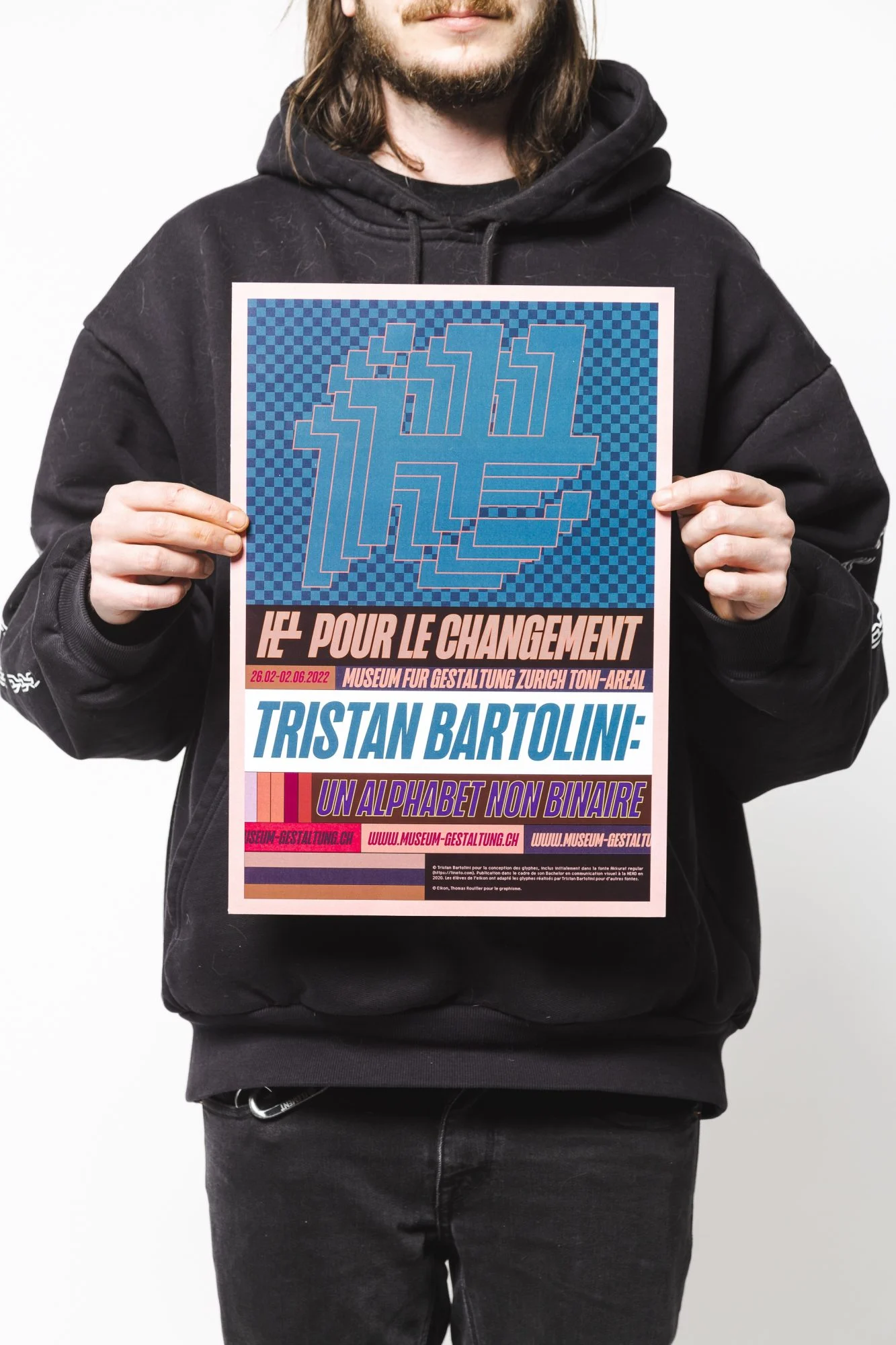 Conception, réalisation d’une affiche pour une exposition dans le cadre du Museum für Gestaltung de Zürich. Au sein de cette exposition thématique, toutes les affiches présentées sont réalisées sur la base des caractères épicènes de Tristan Bartolini, que l’affiche promeut.