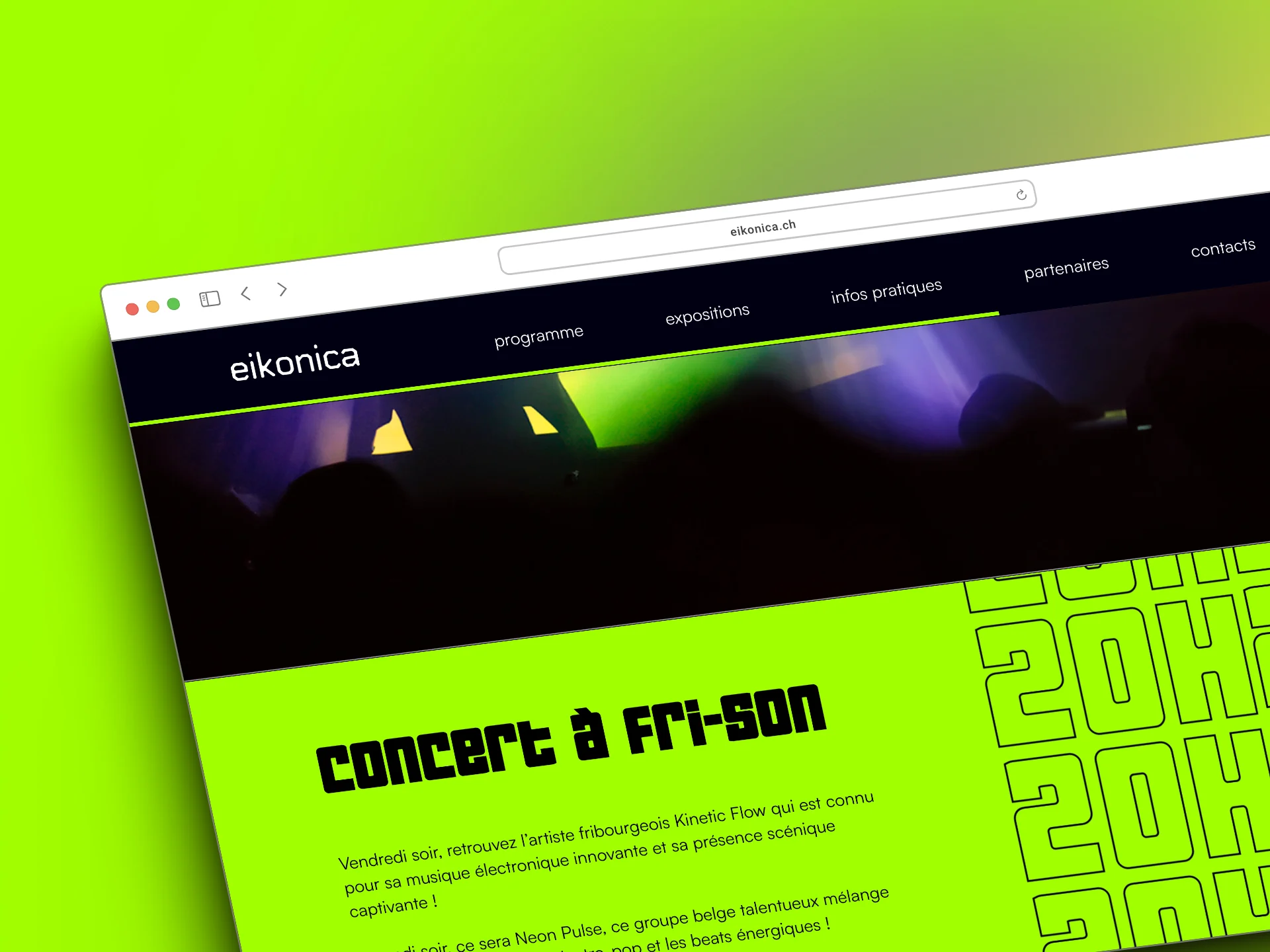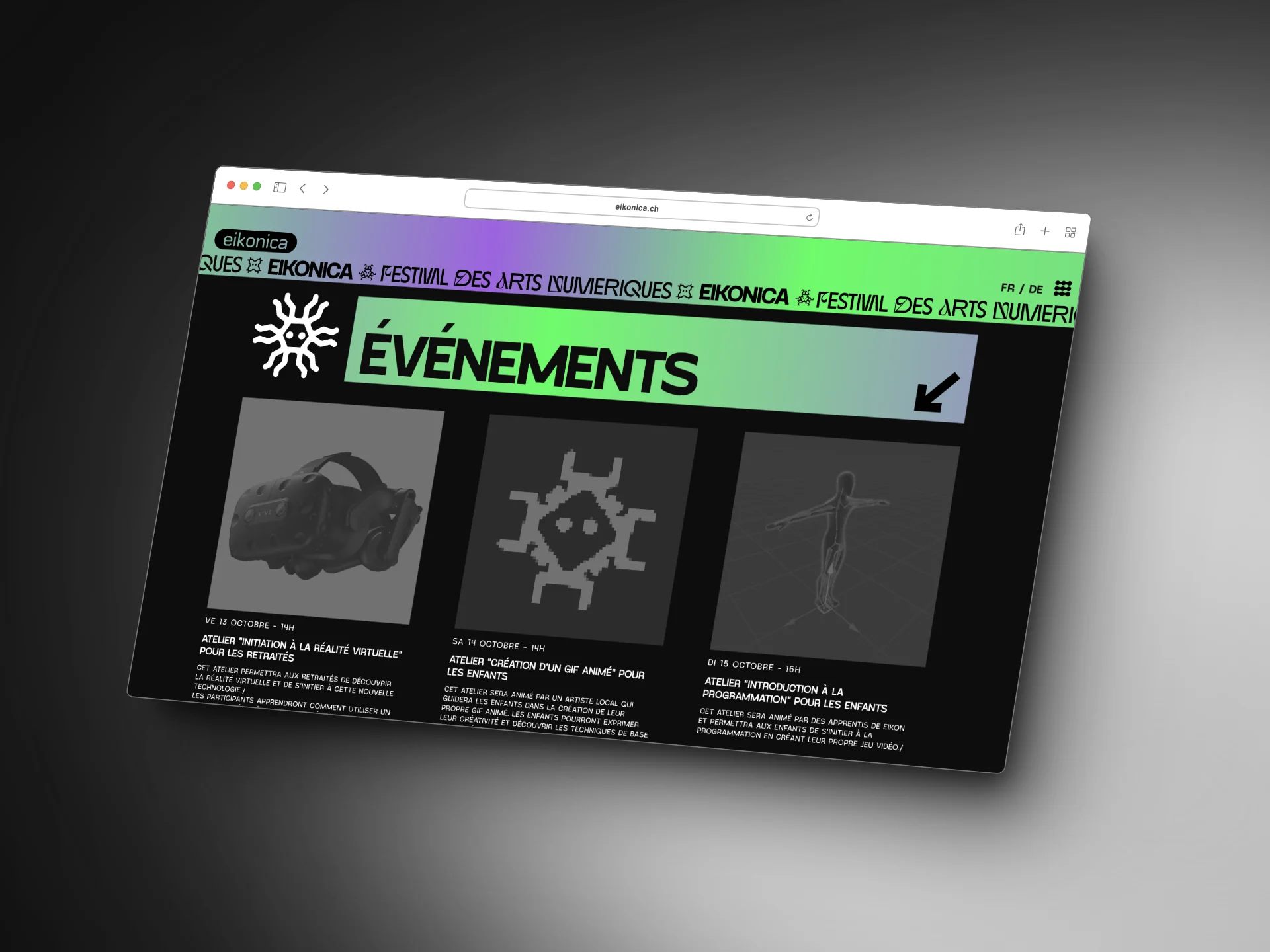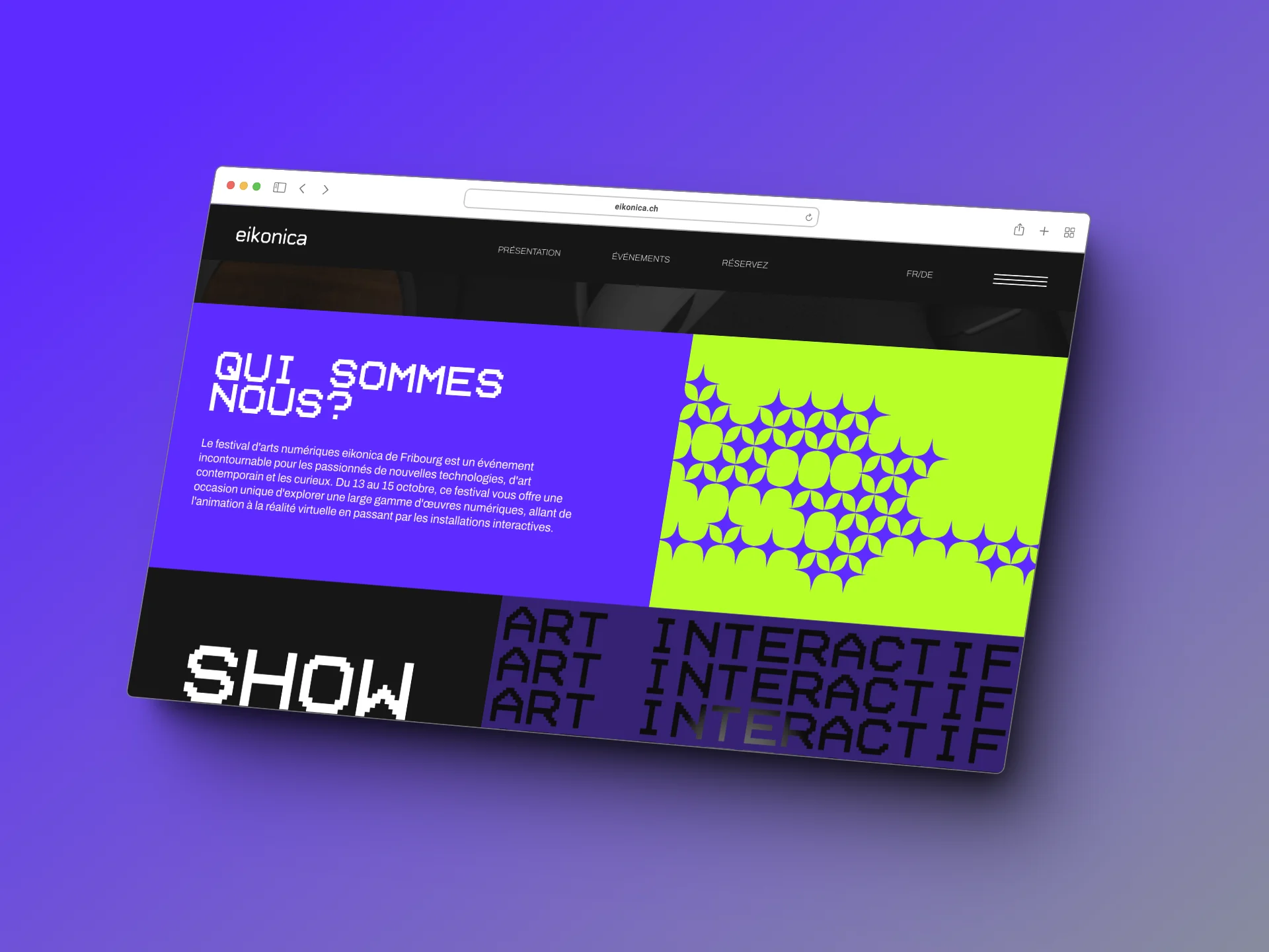 Création d’un site internet pour un festival (fictif) d’arts numériques à eikon.