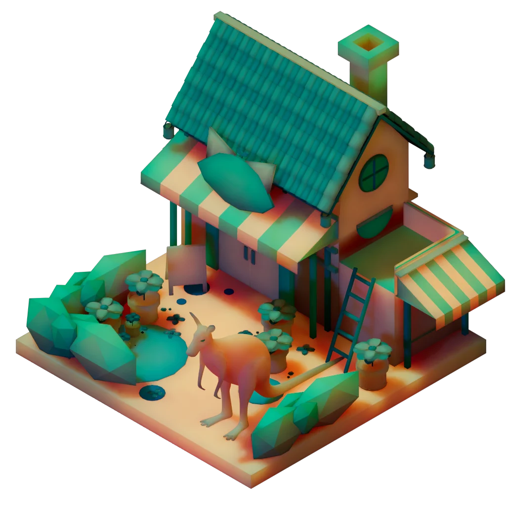 On veut réaliser un jeu isométrique. Le but du jeu est de découvrir 4 intrus dans une ville. Chaque élève modélise un élément architectural d’une ville en 3D et livre 5 images fixes: la première normale, et les autres avec un intrus.