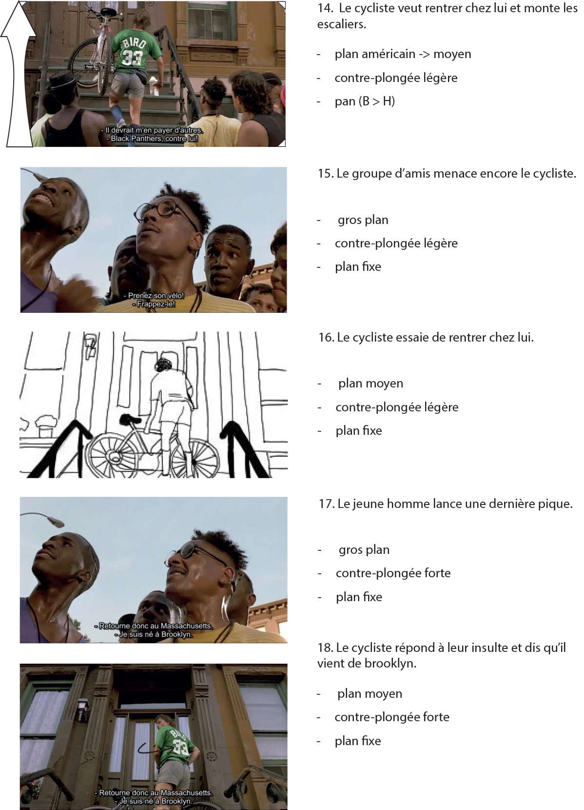 Réalisez un storyboard à partir d’une séquence d’un film (« Do the right thing » de Spike Lee). L’exercice permet de se concentrer sur le langage du storyboard (Valeur du plan, Angle de vue, Mouvement de caméra, résumé de l’action ou dialogue). Cela va permettre de comprendre comment utiliser cet outil presque indispensable dans la création d’une vidéo ou d’un film.